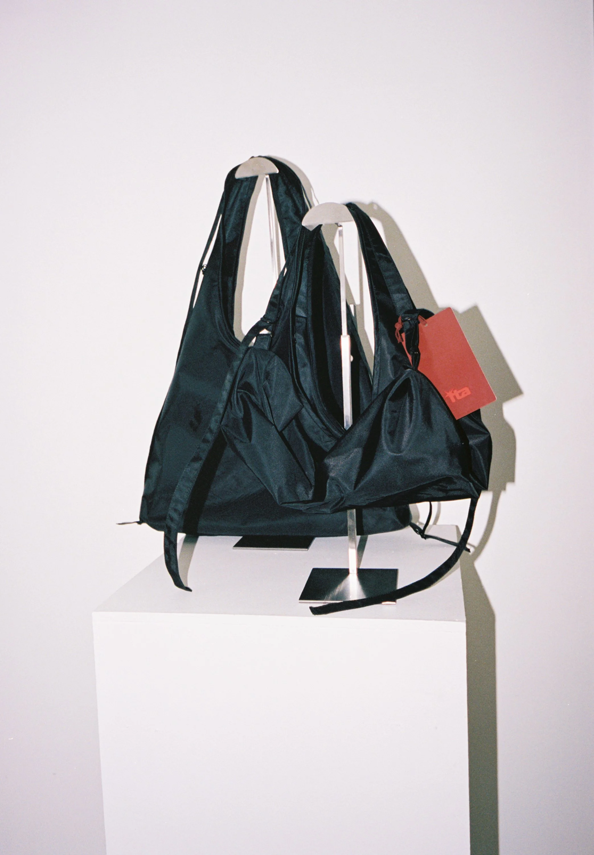 A multifunctional, non-gendered bag designed with circularity and care at its core. Crafted from 100% recycled nylon, Every is water-resistant, lightweight, and built to last—transforming effortlessly into a tote, shoulder bag, backpack, crossbody, or sling. With minimal seams and a monomaterial design, it’s made for easy repair and future recyclability.